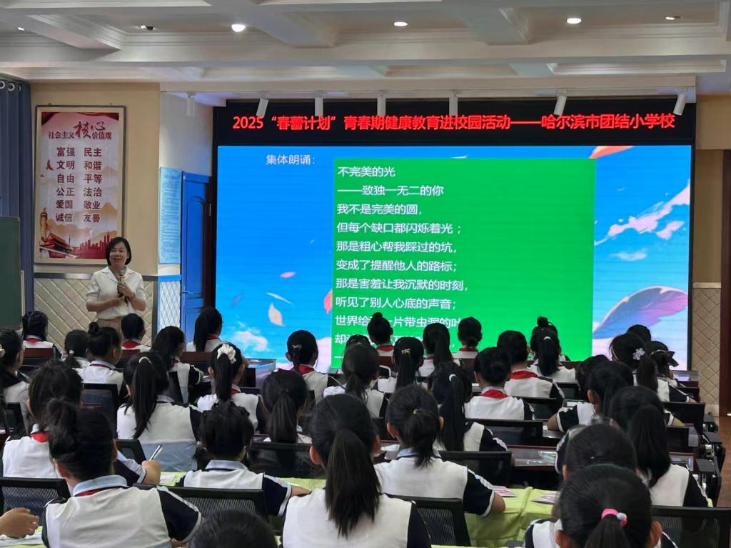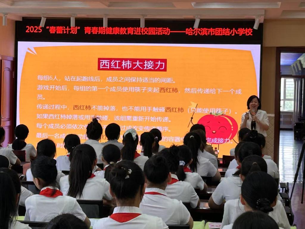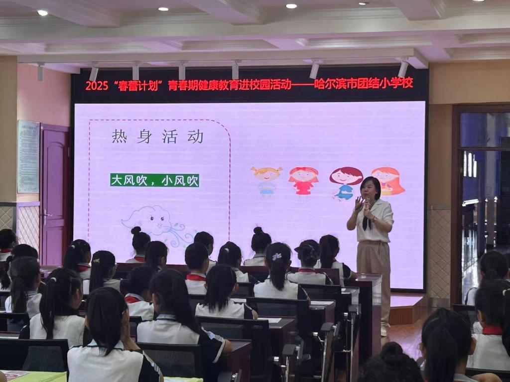 2025年5月30日上午,在黑龙江省妇女儿童基金会的邀请下,我校心理健康教育咨询中心副主任蔡培培走进哈尔滨市团结中心小学校,为100多名女同学上了一堂生动的心理课,拉开了2025年“春蕾计划”青春期健康教育进校园活动的序幕。