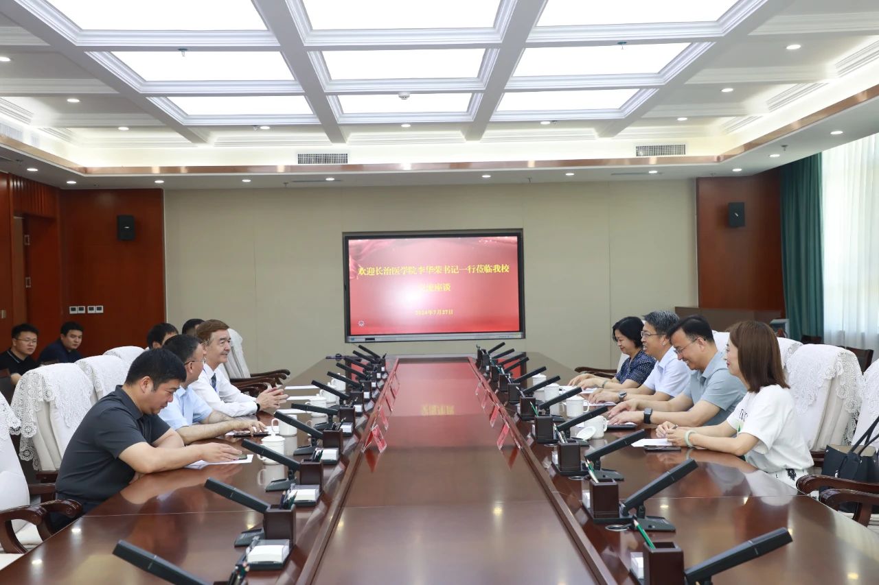 7月27日,长治医学院党委书记李华荣,党委副书记、校长王金胜一行来我校参观调研,与校党委副书记、校长阿吉艾克拜尔·艾萨交流座谈。