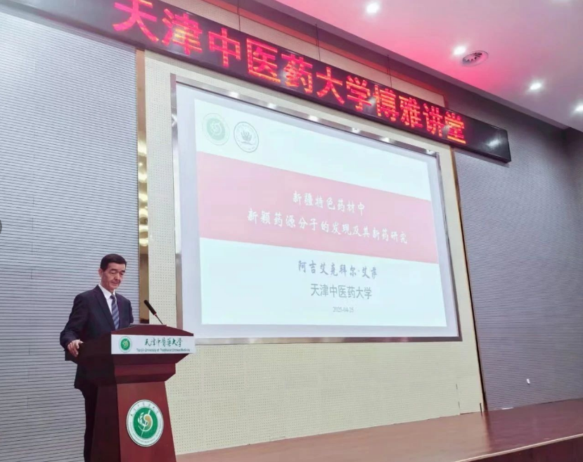 阿吉艾克拜尔·艾萨为天津中医药大学研究生代表作了题为《新疆特色药材中新颖药源分子的发现及其新药研究》的专题学术报告。