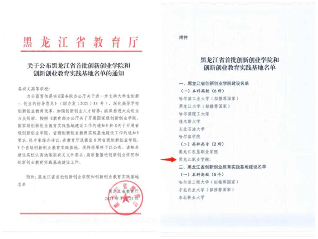 8月22日,黑龙江省教育厅发布了《关于公布黑龙江省首批创新创业学院和创新创业教育实践基地名单的通知》,评选出八所黑龙江省创新创业学院和八个黑龙江省创新创业教育实践基地。我校被评为黑龙江省首批省级创新创业学院。