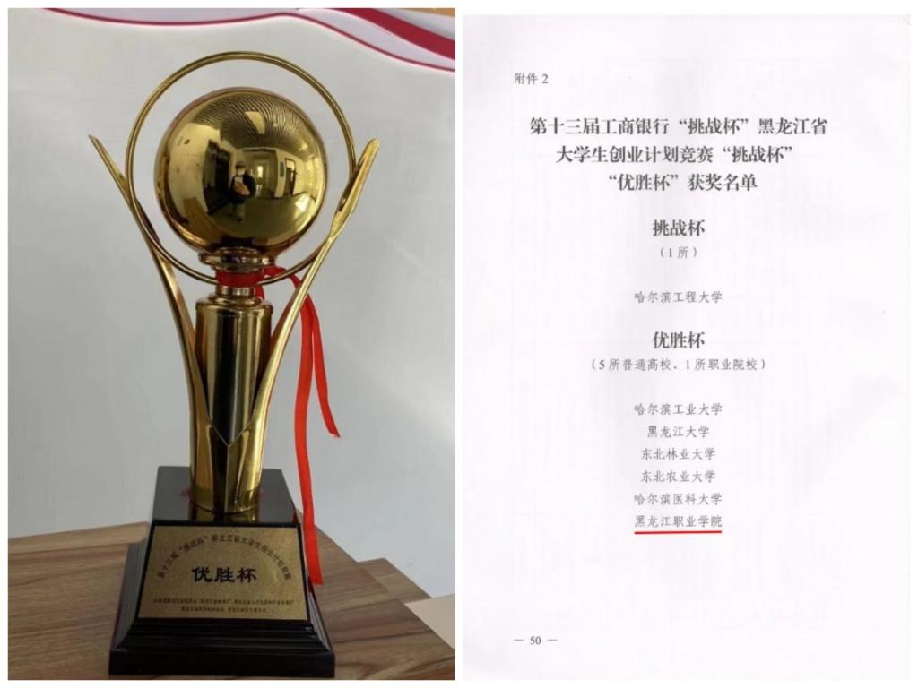 近日,共青团黑龙江省委员会、黑龙江省教育厅、黑龙江省人力资源和社会保障厅、黑龙江省科学技术协会、黑龙江省学生联合会联合下发了《关于表彰第十三届工商银行“挑战杯”黑龙江省大学生创业计划竞赛获奖集体和个人的决定》(黑青联发[2022]23号),我校荣获本届“挑战杯”黑龙江省大学生创业计划竞赛“优胜杯”,是全省唯一获此殊荣的高职院校。