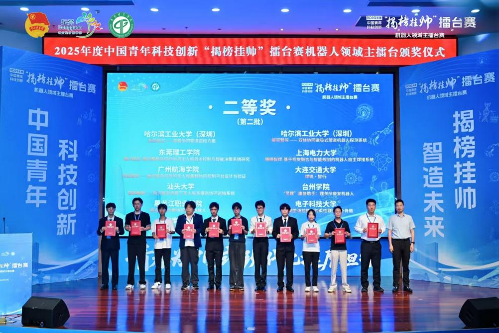 ▲2025年度中国青年科技创新“揭榜挂帅”擂台赛机器人领域主播台颁奖仪式现场
