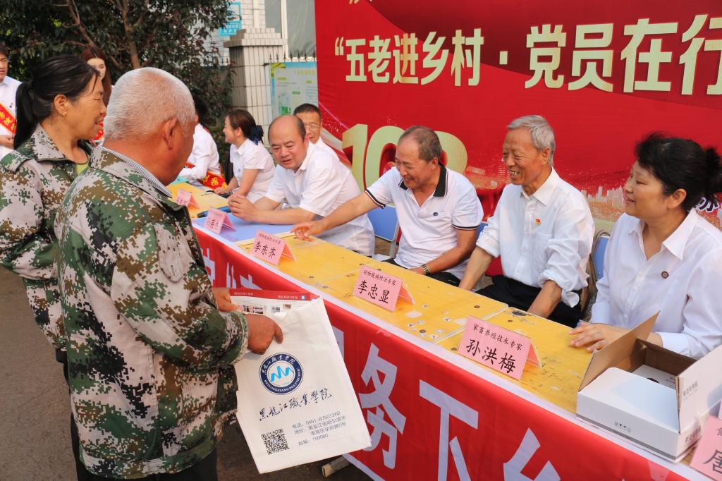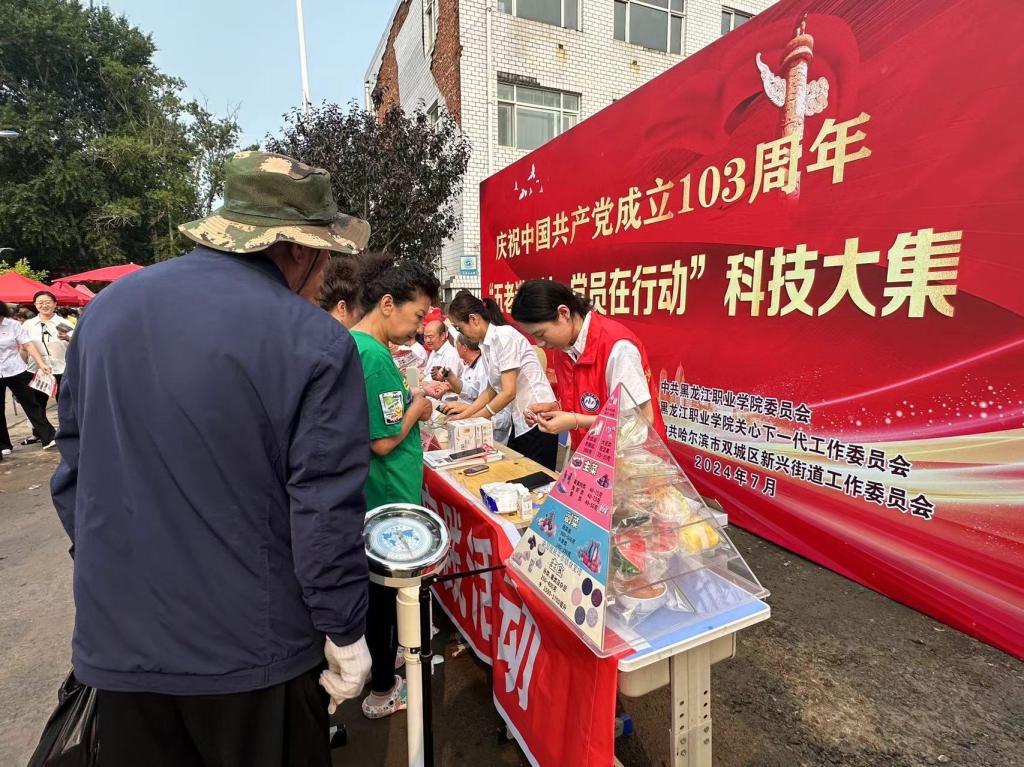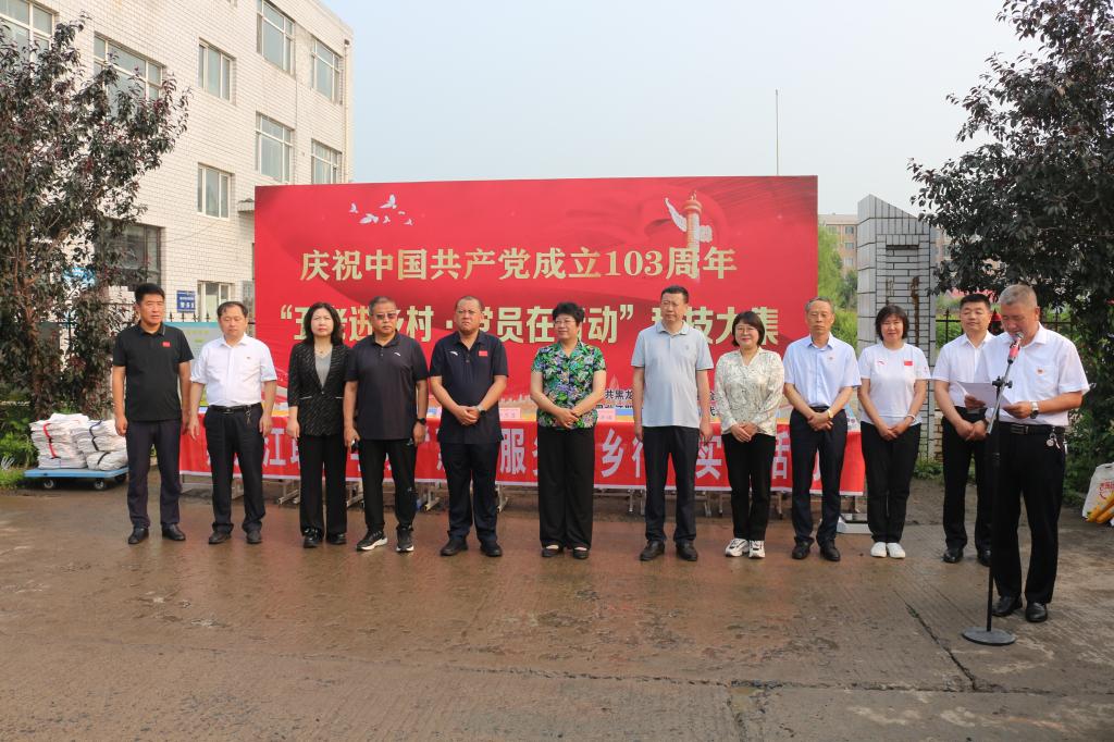 7月6日,黑龙江职业学院和双城区新兴街道党工委在双城区新民村共同举办庆祝建党103周年“五老进乡村·党员在行动”科技大集活动。学校党委书记崔治春,双城区政府副区长李彦鹏,学校党委委员、宣传统战部部长杨东辉,新兴街道党工委书记史敬轩、办事处主任刘楠出席活动,“龙职”工匠志愿服务团专家及30余名学生参加活动。学校关工委办公室主任张晓东主持开集仪式。