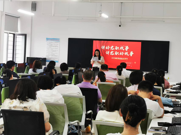 第一位宣讲人齐星辰老师,她宣讲的题目是《勇立潮头 赛场亮剑 满园桃李 成绩斐然》。事迹中的主人公杨继杰老师,看似温文尔雅、实则坚韧不拔,她默默奉献、情系学院、心系学生,在职业教育一线一干就是28载。她专业本领过硬,真爱学生,不计个人得失,年近半百仍坚守教学一线,指导学生各项专业技能大赛,充分发挥着传帮带作用,指导青年教师不断进步。