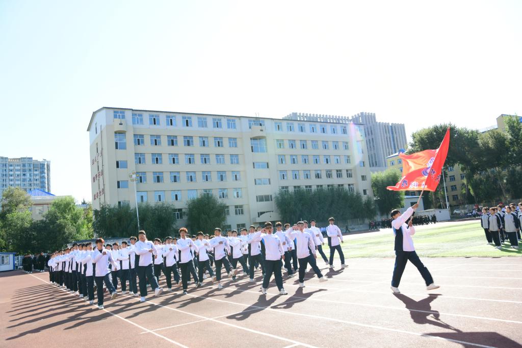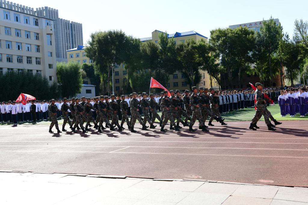 8时30分,升旗仪式正式开始,在庄严的国歌声中,五星红旗缓缓升起,拉开开学典礼序幕。首先,进行的是军训成果展示,分列式上各军训方队同学以整齐的步伐、嘹亮的口号、饱满的热情、昂扬的斗志、坚定的信念展示了为期三周的军训成果,为“大学第一课”交出一份精彩的青春答卷。军训方队代表队进行了擒敌拳、格斗基础、战术基础、内务整理等军训科目展示,在校大学生退役士兵展示了摔擒、小队战术科目。