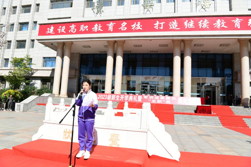 9月22日,学校在运动场隆重举行2023级新生开学典礼暨军训成果展示、“龙职奖”颁奖大会。黑龙江省军区战备建设局大校主任赵汝亮、承训单位负责人张金龙,学校党委书记崔治春、校长王利文、党委副书记周家郁、纪委书记李伟、组织部部长钟敏强、原副校长王明海出席活动,2023级全体新生和全校教职工参加活动。典礼由周家郁主持。
