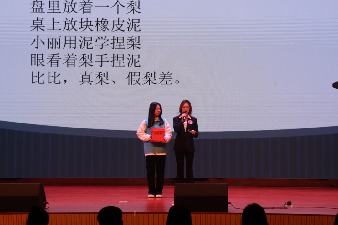 随着各环节的稳步进行,层层遴选,经评委团综合评审,最终数字商贸学院的闻家辉获得“最佳口才奖”,智能制造技术学院的徐伟涵获得“最佳台风奖”;数字商贸学院的闻家辉、智能制造技术学院的吉鹏宇获得“金话筒奖”;数字商贸学院的吴雨彤、旅游人文学院的华佳琦、会计金融学院的赵婉宁获得“银话筒奖”;智能制造技术学院的徐伟涵、建筑工程学院的王鑫、旅游人文学院的梅加林、建筑工程学院的朱悦涵、高琨获得“铜话筒奖”;数字商贸学院的朱奕霏、能源与汽车工程学院的韩可、高广策等共8名同学获得“优秀奖”,与会评委老师为获奖选手颁发了荣誉证书与奖杯。