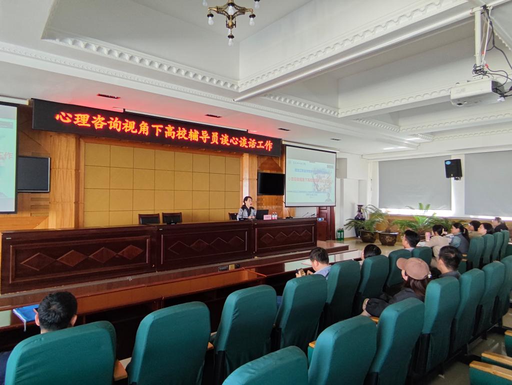 为了进一步提升辅导员谈心谈话工作技能,提高了解学生内心的能力,及时发现心理问题、应对心理危机,学校于5月29日邀请黑龙江工程学院学生工作部学生心理健康教育与咨询中心主任付翃飞教授,举办题为《心理咨询视角下高校辅导员谈心谈话工作》的讲座。讲座由学生工作部副部长吴弢主持,各二级学院副书记、学管办主任、全体专兼职辅导员及公寓辅导员、心理健康教育咨询中心教师以及兼职心理咨询师聆听了讲座。