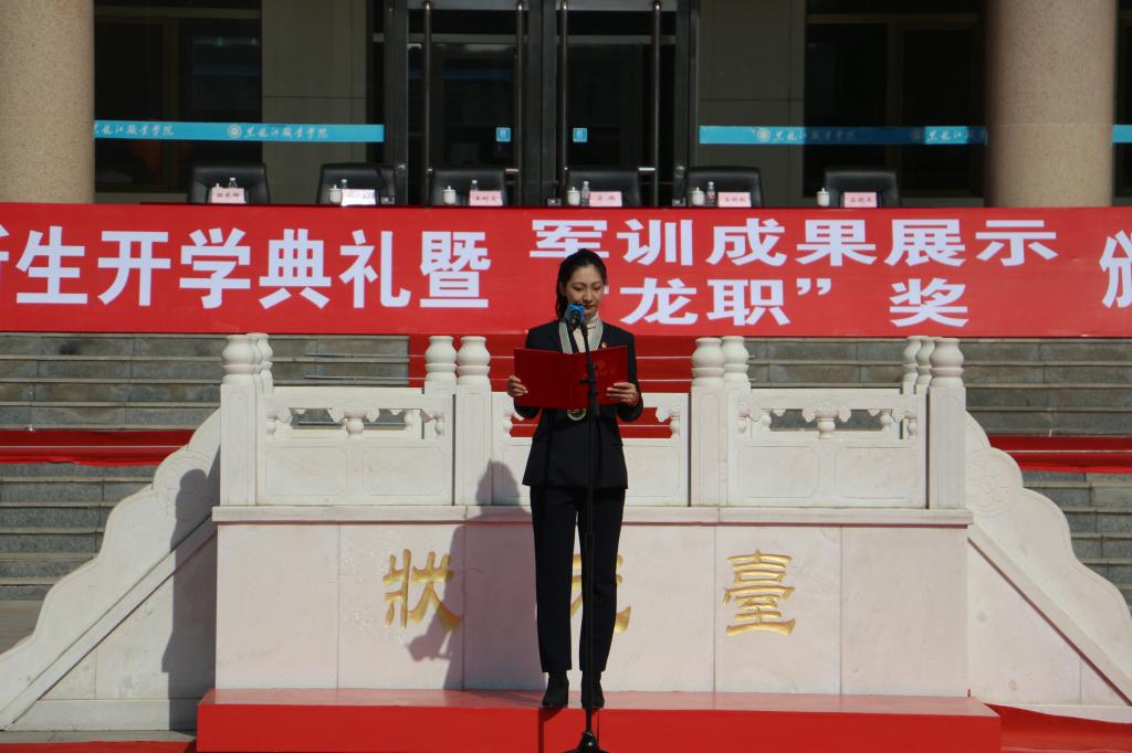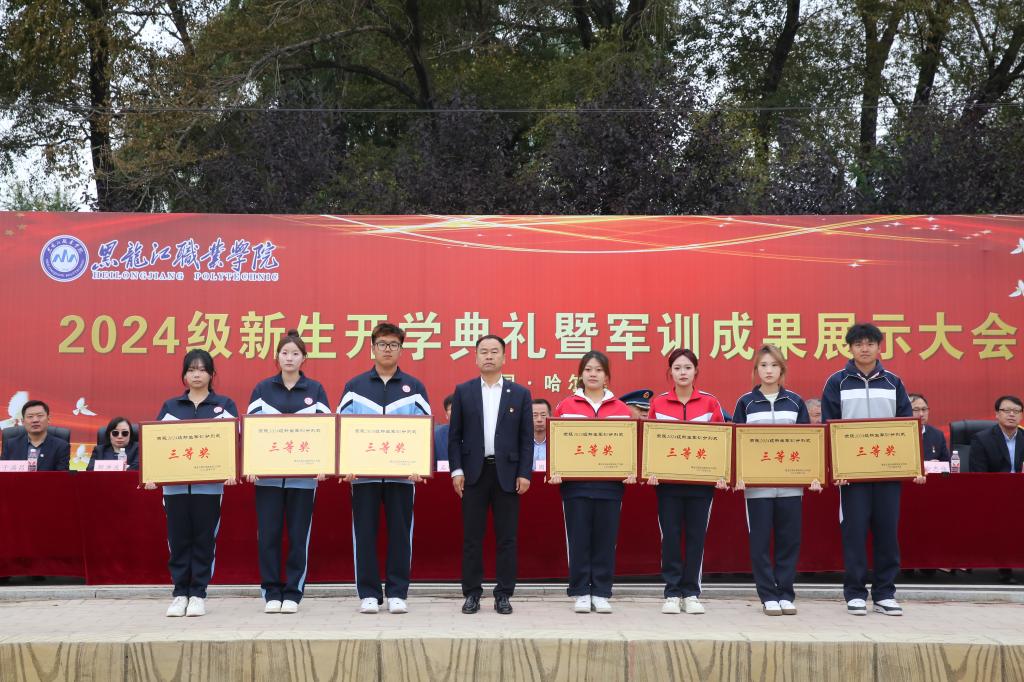 9月23日,学校在运动场隆重举行2024级新生开学典礼暨军训成果展示、“龙职”奖颁奖大会。武警哈尔滨支队中校吴鹏,学校校长王利文,党委副书记周家郁,副校长吴艳秋,党委委员、宣传统战部部长杨东辉,党委委员、组织部部长石明杰出席活动,2024级全体新生和全校教职工参加大会。大会由周家郁主持。