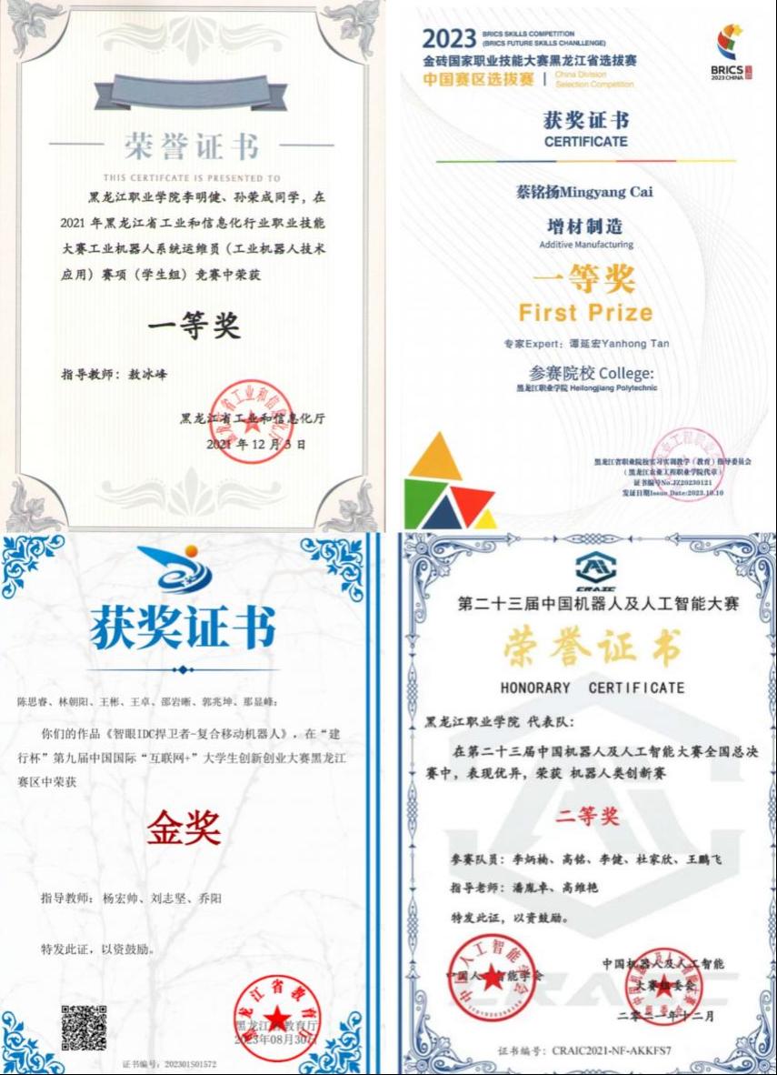 近年来,学院师生在各类技能竞赛中屡获佳绩,在教师大赛方面表现出色,获得国赛二等奖1项、国赛优胜奖1项,省赛金奖2项,教学能力大赛国赛一等奖1项,省赛一等奖3项。此外,在“互联网+”大赛中,荣获国赛铜奖2项、省赛金奖3项、银奖5项及铜奖3项,在“挑战杯”大赛中获得省赛金奖1项;在学生技能大赛中,荣获国赛一等奖1项、二等奖2项、三等奖2项、铜奖1项、优胜奖1项,同时获得省赛一等奖8项。充分展示了学院在智能制造领域的卓越实力和人才培养成果。