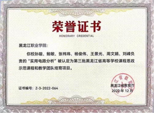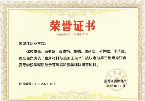 学院在党建引领、思政教育、技能培养等方面取得了显著成效,荣获教育部“新时代职业学校名师(名匠)名校长培养计划(2023—2025年)培养对象”1人、国家级工人先锋号称号1个、享受国务院特殊津贴专家1人、黑龙江省工人先锋号称号1个、黑龙江省教育系统先进集体1个、黑龙江省级师德先进集体1个、“黑龙江省高等学校课程思政教学团队”1个、黑龙江省人民政府“龙江技术能手”1人、黑龙江省级教学名师2人、享受黑龙江省政府特殊津贴专家2人、黑龙江省总工会“龙江工匠”1人、黑龙江省高层次人才6人。同时,学院还拥有“国家级技能大师工作室”“省级技能大师工作室”和“省教科文卫体系统劳模和工匠人才创新工作室”。