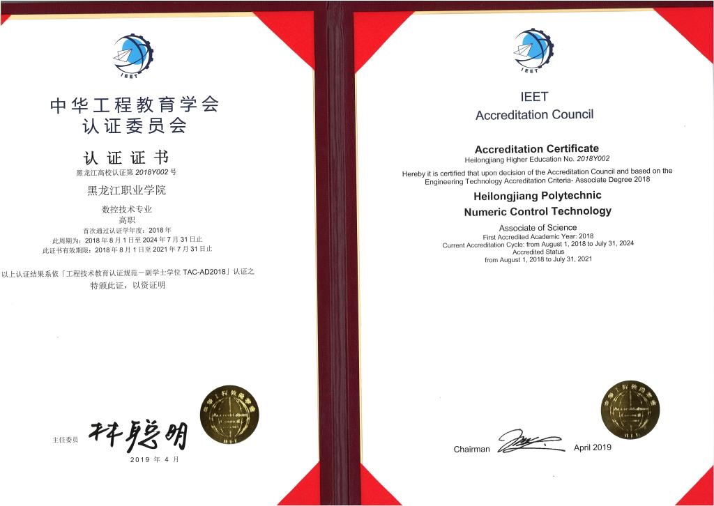 2019年4月19日,中华工程教育学会(IEET)认证委员会( Institute of Engineering Education Taiwan) “2018学年度通过认证专业证书颁发仪式”在西安隆重举行,我校首批参加悉尼协议国际工程技术教育认证的数控技术专业与计算机网络技术专业获得了国际工程技术教育认证(TAC-AD)证书。