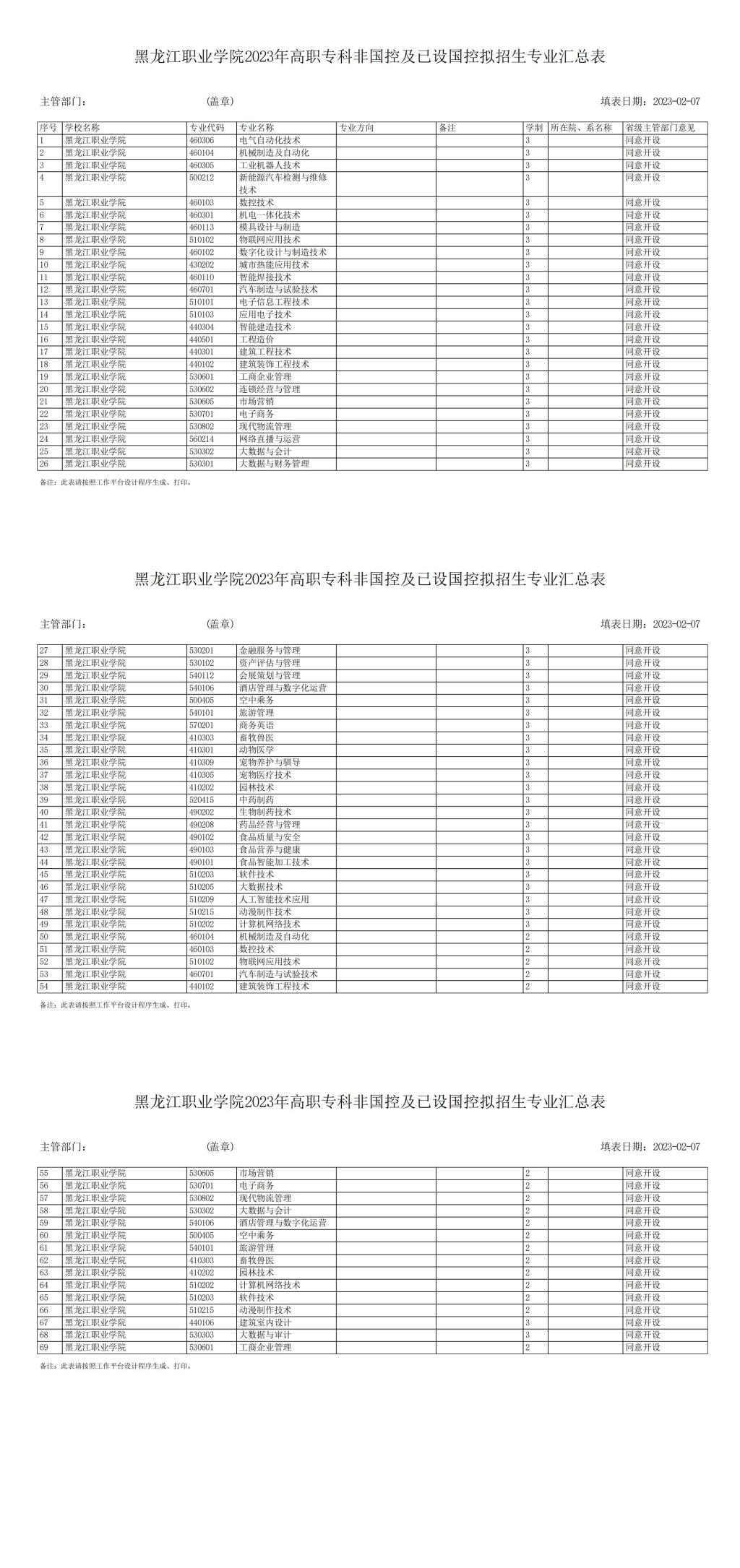 黑龙江职业学院2023年高职专科非国控及已设国控拟招生专业汇总表