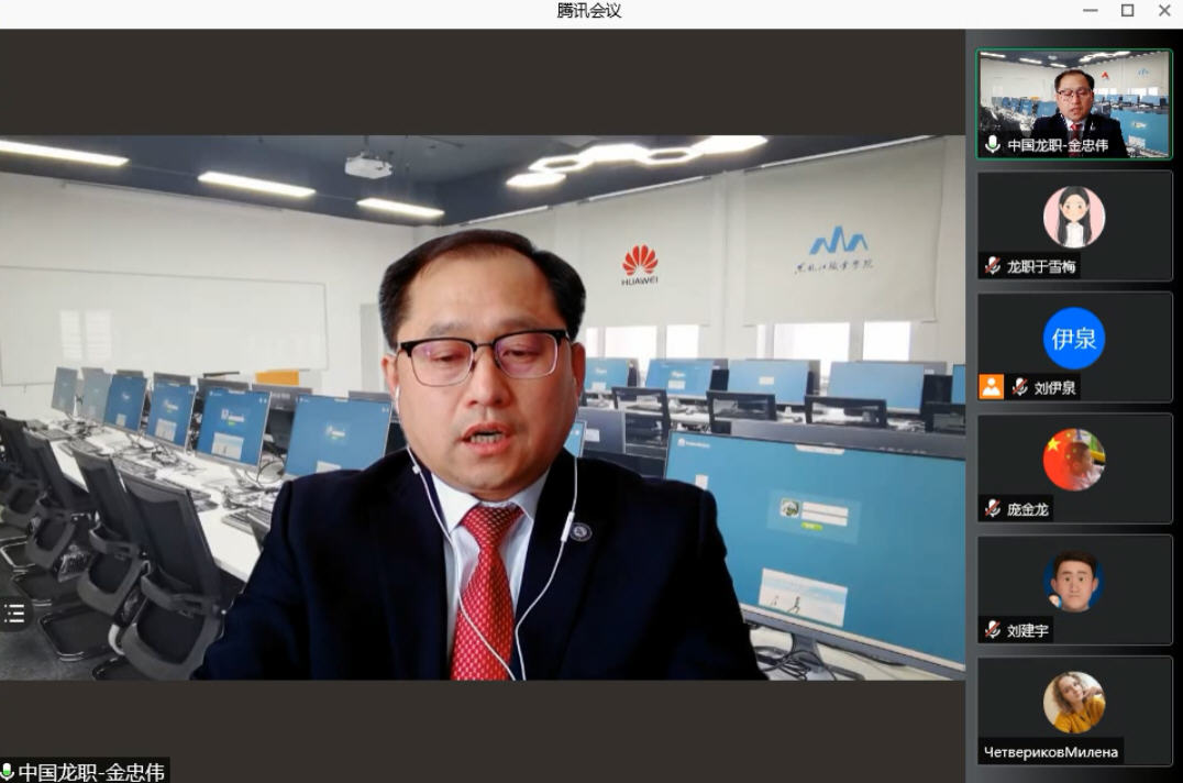 开发特色课程,开展海外培训。按照学校国家级高水平专业群建设方案,品牌国际化工程及人才培养国际化工程建设内容与目标的要求,以输出龙职教学资源为重点,学校按照OBE教育理念,量身为华为公司设计了“专业课程+素质课程+特色课程+实践案例课程”的培训课程体系框架,制定培训方案,制作培训手册,编写教材、试验手册、实训指导书、英文课件等。根据国际关系、格局变化及地缘优势,结合华为海外业务的开展情况,完成华为在俄罗斯海外培训基地选址工作。2021年10月11日,开展了龙职–华为ICT产业学院第1期ICT人才培训,我校信息工程学院金忠伟教授,通过腾讯会议,面向俄罗斯远东联邦大学37名师生,课程采取小班在线讲座、交流方式进行,受到了俄方师生的一致好评。