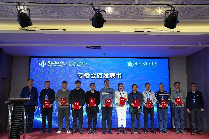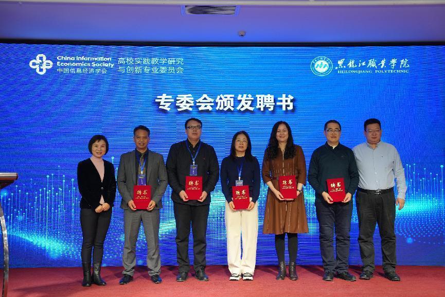 据介绍,高校实践教学研究与创新专委会作为中国信息经济学会的二级机构,为各高等院校搭建学习交流、共同发展的平台。本次大会是该专委会的全国代表大会,将为促进高校实践教学研究与创新领域的发展,为我国数字经济的发展做出积极贡献。会上进行了高校实践教学研究与创新专委会主任单位揭牌仪式,并为专委会学术委员会主任、副主任、学术委员、委员代表颁发了聘书。王利文当选学术委员会主任;张玲、王晓典、田海君、金忠伟、王知强、纪孝清当选学术委员会副主任;陈良、刘志勇、连敏辉、侯彦明、薛继昌、周蓁蓁、罗宁当选学术委员;吴菲、贾维红、易林林、崔晓文、杨东飞、王冠鹰、艾良友、刘胜达、陆燕冰当选委员。
