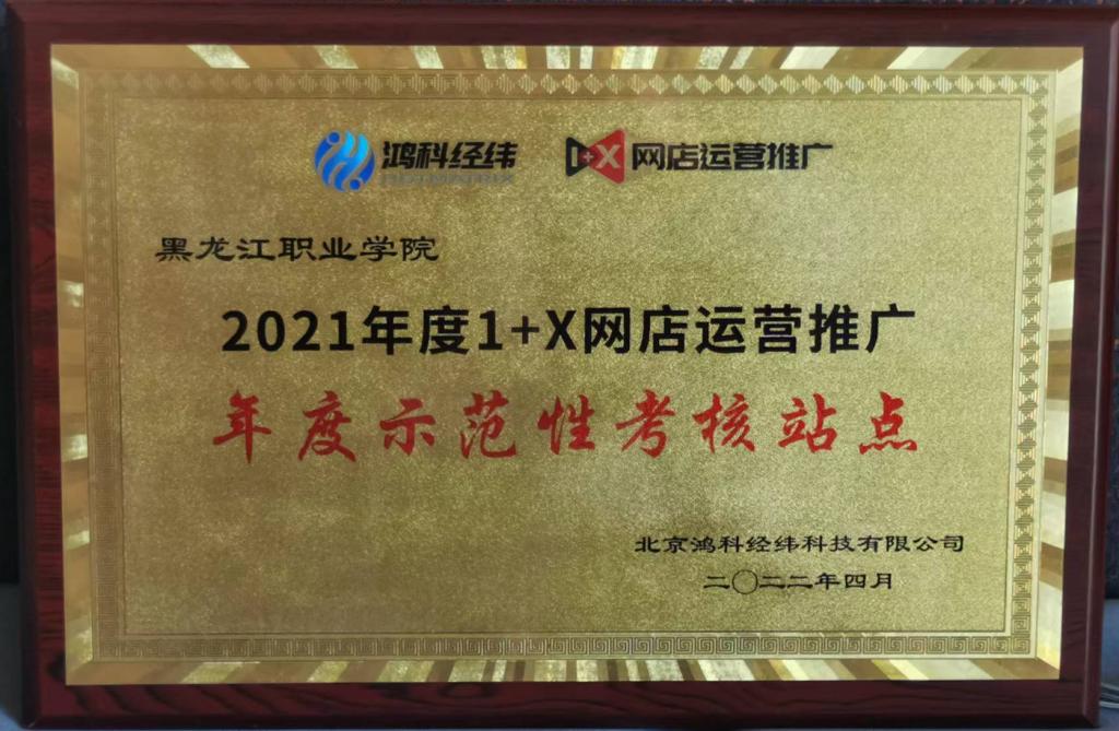 为全面落实《关于在院校实施“学历证书+若干职业技能等级证书制度试点方案”》、《关于推进“1+X”证书制度试点工作的指导意见》等文件精神,黑龙江职业学院充分发挥国家骨干校与双高校的办学优势,精心组织培训,严格规范考点,加强基地建设,推动了1+X试点工作的高效深度开展,荣获2021年“1+X网店运营推广年度示范性考核站点”荣誉称号。