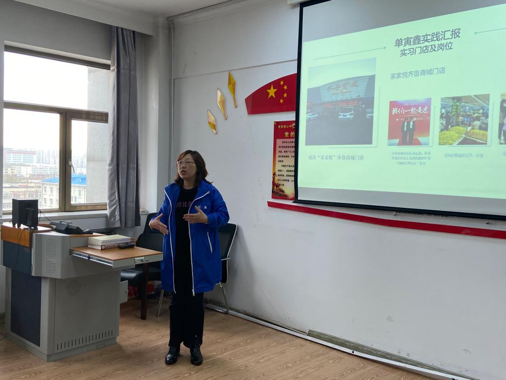 会议伊始,8位老师分别从家家悦集团简介、企业参观、会议交流成果、具体工作内容、家家悦新业态W37和线上销售模式学习成果等几个部分进行了汇报分享,8位教师每个人都分享了自己的学习收获与感悟。这次暑期教师实践历时30天,教师们吃住在企业,工作在一线,既近距离指导学生顶岗实习,又深入企业体验企业的各个工作岗位与各项工作内容,及时与企业研讨、交流。8位老师牺牲假期与家人的团聚时间,特别是单寅鑫老师在有老人需要照顾、高霞老师面临孩子中考的重要时刻时,老师们克服了种种困难,顺利完成了为期30天的企业实践锻炼。8位老师吃苦耐劳、不怕困难的精神值得每位老师学习!经过30天的企业实践,8位老师收获了丰富的学习成果。有老师将学生在顶岗实习期间出现的问题认真总结提炼,成功申报名称为《商贸零售专业群课程思政教学改革实践研究》的省级教学改革研究项目,还有老师计划将家家悦集团最新的应用技术融入到自己的课程教学中……8位老师将企业实践锻炼的成果与所有专任教师进行了分享,激发了教师们专业技能提升的热情,启发了教师们探索校企共育学生的思考。