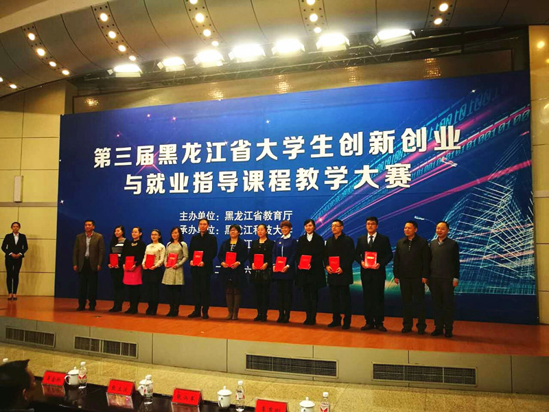 10月23日,由黑龙江省教育厅主办,黑龙江科技大学和黑龙江农业工程职业学院承办的“第三届黑龙江省大学生创新创业与就业指导课程教学大赛”,在黑龙江科技大学信息报告厅举行了颁奖典礼,至此历时十个月的大赛落下帷幕。工商管理学院教师毕大伟、宋红霞在比赛中表现突出,取得了优异成绩。毕大伟荣获此次大赛教学成果(专科组)一等奖;宋红霞荣获大赛教学成果(专科组)三等奖。