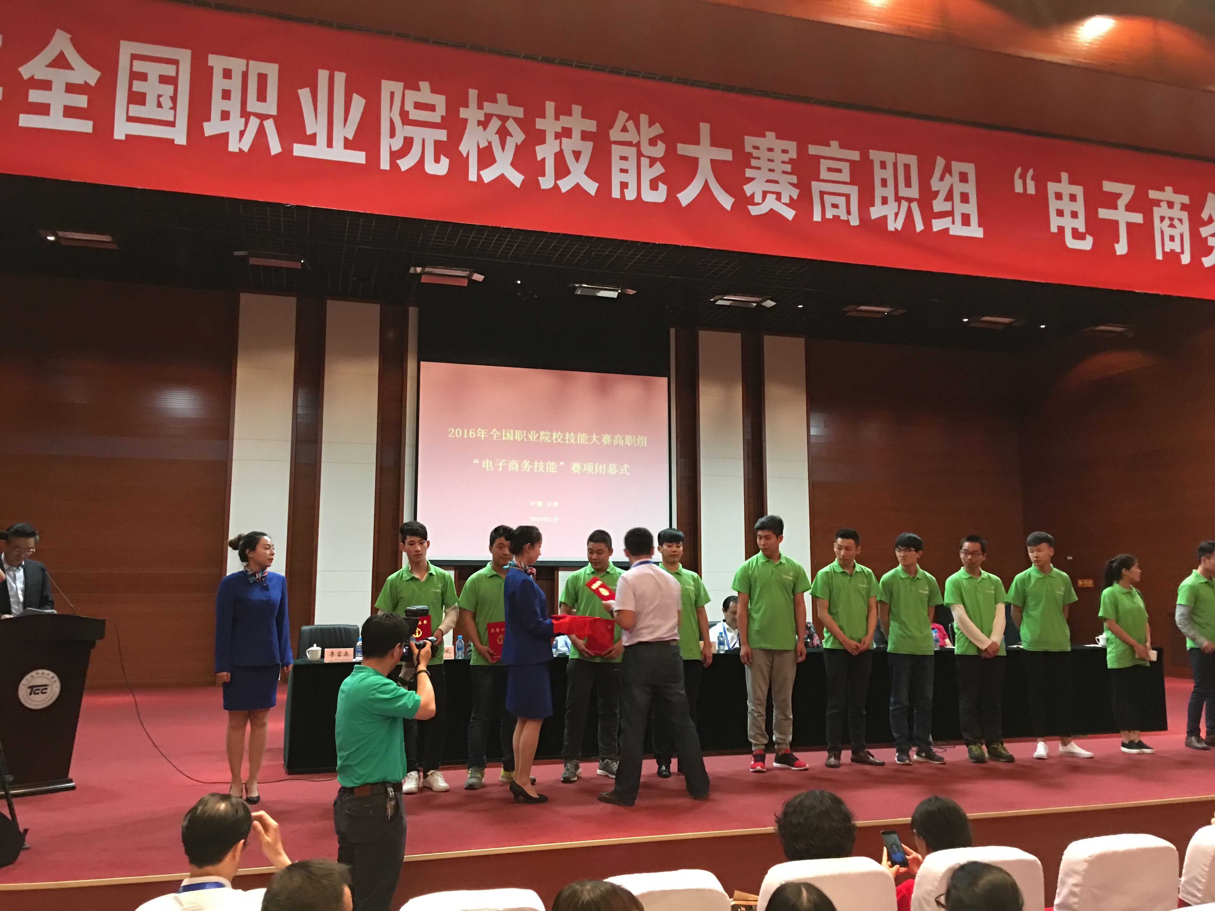 2016年5月13日,由教育部、财政部等31个部委和联合会联合主办的2016年全国职业院校技能大赛高职组“电子商务技能”赛项在天津商务职业学院举行。本次比赛黑龙江省共派出3支参赛队伍,黑龙江职业学院代表队是其中之一。黑龙江职业学院工商管理学院电子商务专业代表队4位参赛队员齐心协力、顽强拼搏,经过近8小时激烈角逐,以77.70分的总成绩勇夺该赛项团体三等奖(三等奖第3名,总排名27)。