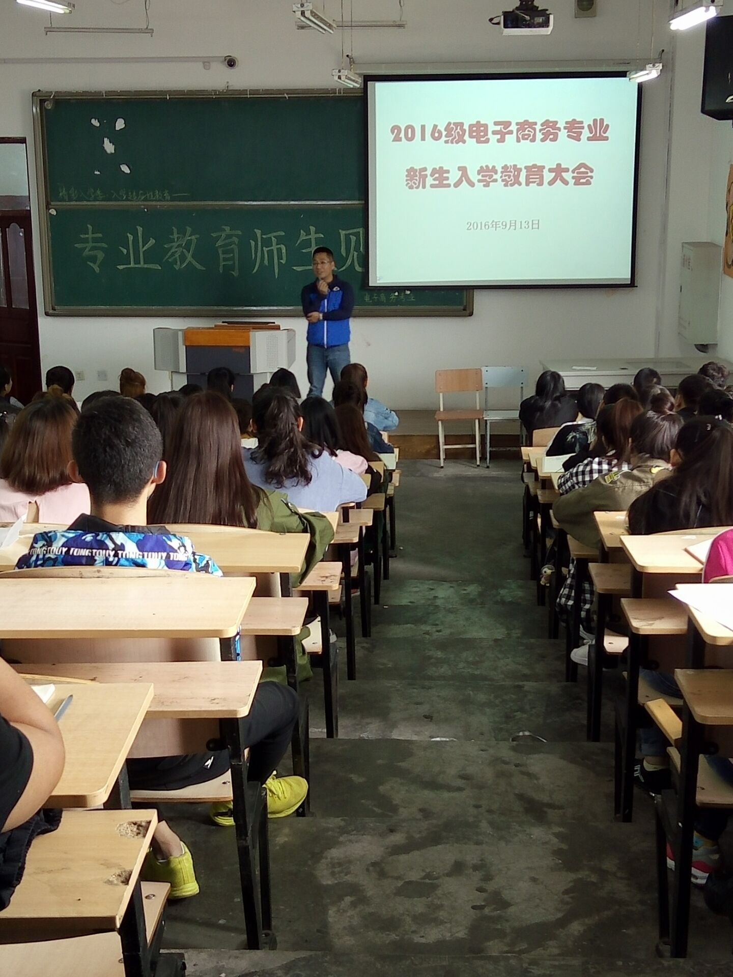 为了让2016级新生拥有一个良好的开端,让他们尽快适应大学生活,同时为了增进师生间的相互了解,工商管理学院电子商务教学团队于2016年9月13日上午9点在主楼西J602教室举行了主题为“2016级电子商务专业新生入学教育”的师生见面会。会议由电子商务教学团队带头人付强老师主持,电子商务教学团队全体教师以及全体2016级电子商务专业新生参加了本次会议。