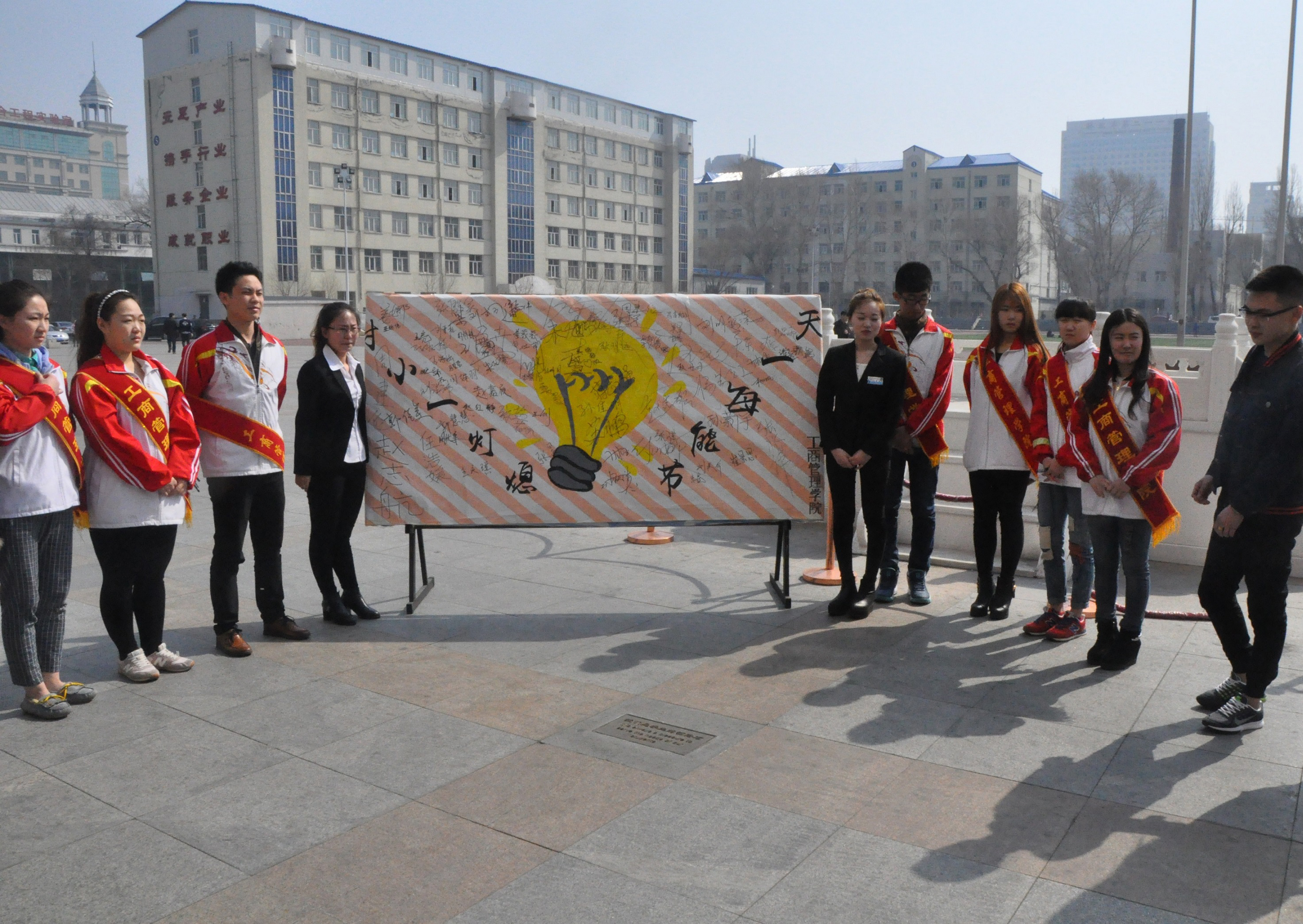3月26日,为响应节能环保“地球一小时”的公益号召,树立全院师生节能环保意识,我院于12:00——13:00于主楼门前举办了“熄灯一小时,节能每一天”的主题签名活动。此次活动得到了全院师生的关注和支持。大家纷纷上前签名。我院也为各位签名的师生准备了一份节能环保手册,来宣传此次活动的主旨。同时,在当天晚自习的最后5分钟,我院的所有教室集体关上了灯光,用实际行动来表达对“熄灯一小时,节能每一天”活动的支持。