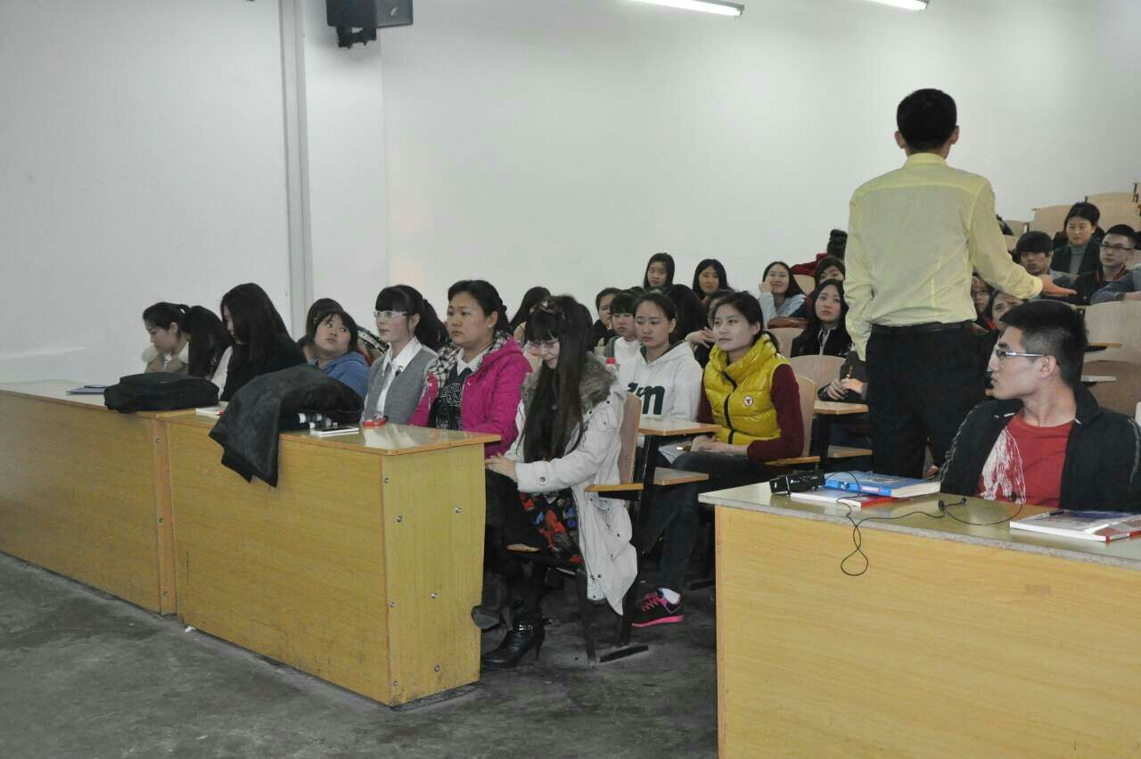 2015年3月25日下午5点10分,在初蕾老师的组织下,工商企业管理专业全体学生在东J401教室接受了来自深圳市佰仟金融服务公司的高级培训师刘闯老师的关于面试求职等方面的知识讲解。