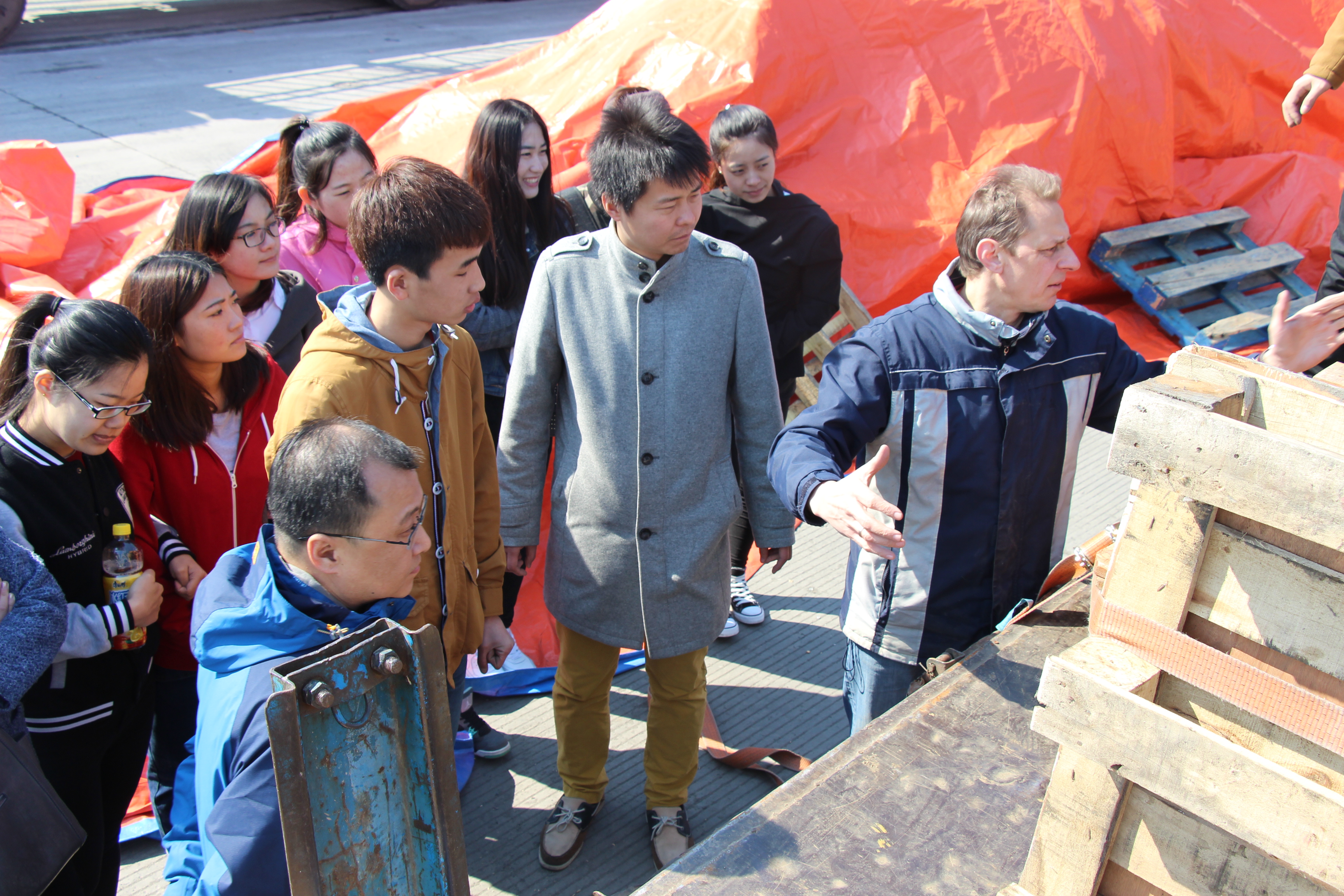 我们在最后一周的第三天去了龙运物流园区进行参观跟现场实训。同学们怀着激动的心情一早就来到了龙运物流园区。老师从德国带来的捆绑货物的绑带,用这些绑带在现场教给学生如何将货物在车厢后面固定好,怎么样捆扎是最安全,最稳固的。不仅仅是教给学生,而且还让每一名学生都动手实践。学生在动手实践的过程中可以最快的熟悉跟记忆。