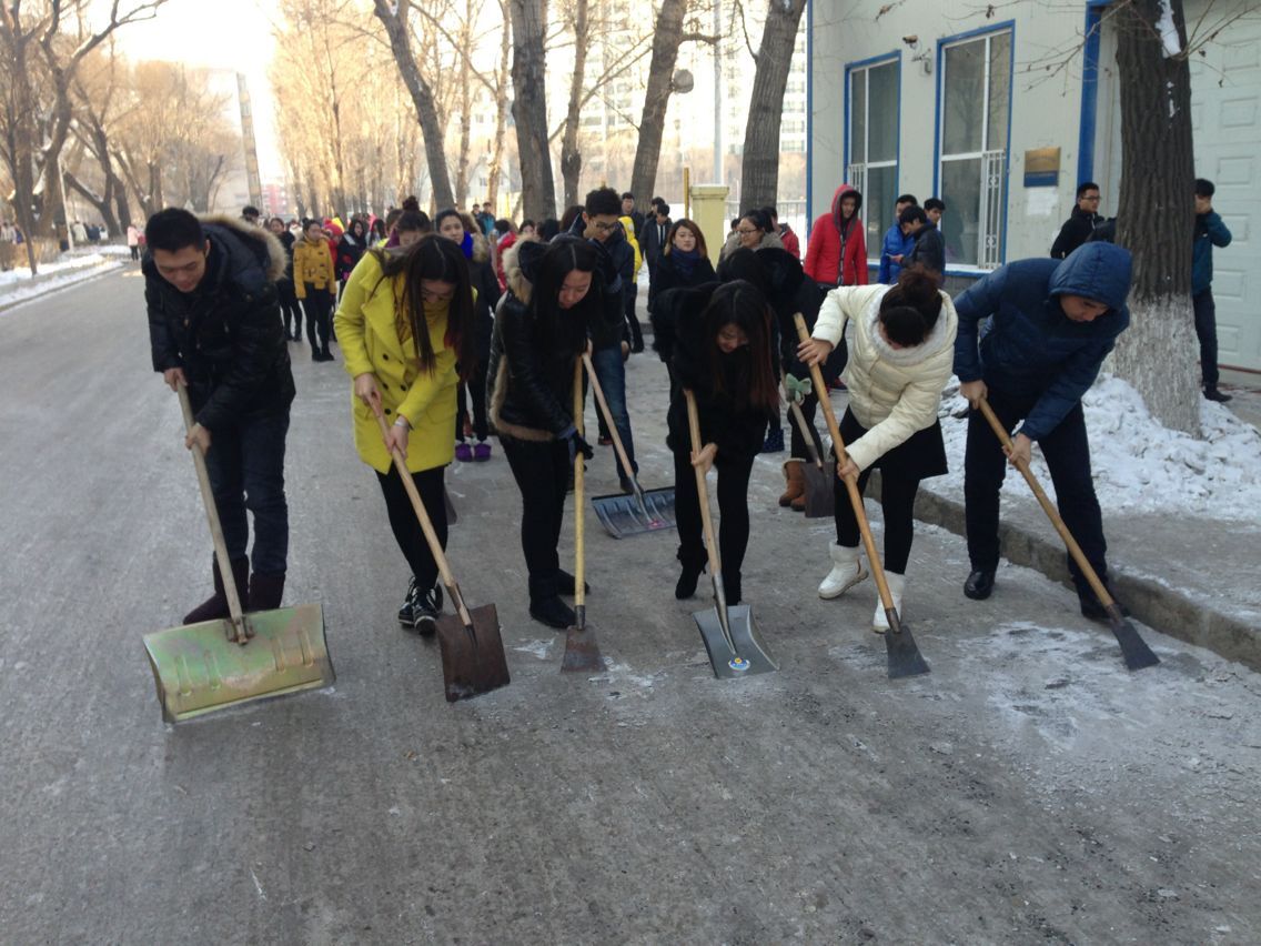 今年入冬以来时常遭遇大雪天气,降雪量相对往年较大、路上积雪较厚,行人的踩踏以及车辆的行驶将雪踩实并且出现冰面,给师生们行走带来诸多不便,同时会加大大一学生扫雪的工作负荷。工商管理学院学生党支部为贯彻落实学生党员责任区示范作用明显的号召,减轻大一学生扫雪工作量,于12月26日中午开展了“我为新生送温暖”学生党员义务扫雪活动。