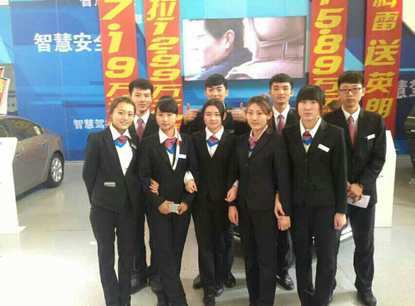 2014年11月10日。我院组织李新、王继伟、刘一鸣、孙美玲、马文婧、姜晓寒、谢莹莹、张博文、张中赫九名营销专业学生去安吉融展别克4S店实习。在实习这段时间里,他们的工作主要分为两个阶段。第一阶段,对他们进行了专业知识培训,让他们了解每款车的价格、配置及高配车和低配车的配置差。第二阶段,他们非常荣幸地参加了第五届哈尔滨秋季车展,在车展这段时间里,市场营销团队专职教师孟璐老师和优秀辅导员于德洋老师特意来看望大家,对他们进行了专业指导,并鼓励大家积极工作。在大家的认真态度下,孙美玲同学和马文婧同学各销售出两台别克车,让企业看到了营销专业学生的能力,同时也为他们的实习大放异彩。