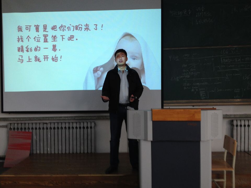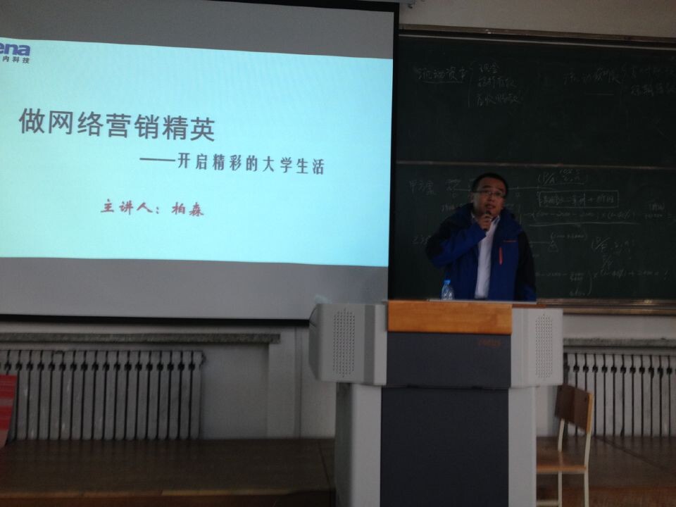 为了配合学院实施教学质量提升工程,同时也为了学生能有一个良好的职业规划,2014年10月29日,在主楼东J301教室,电子商务专业特别邀请了哈尔滨达内科技有限公司校园合作经理王云峰先生和培训总监柏森先生带来了主题为《做网络营销精英—开启精彩的大学生活》的精彩讲座。13级电子商务专业全体同学和部分14级电子商务专业同学共140多人参加本次讲座,在聆听老师精心准备的理论知识,实用案例的同时,同学们也在积极思考着自己工作生活中的困惑和个人的职业发展。柏森总监与同学分享丰富的从业经验和专业技巧。聆听了本次讲座,讲座现场精彩纷呈,掌声雷动。