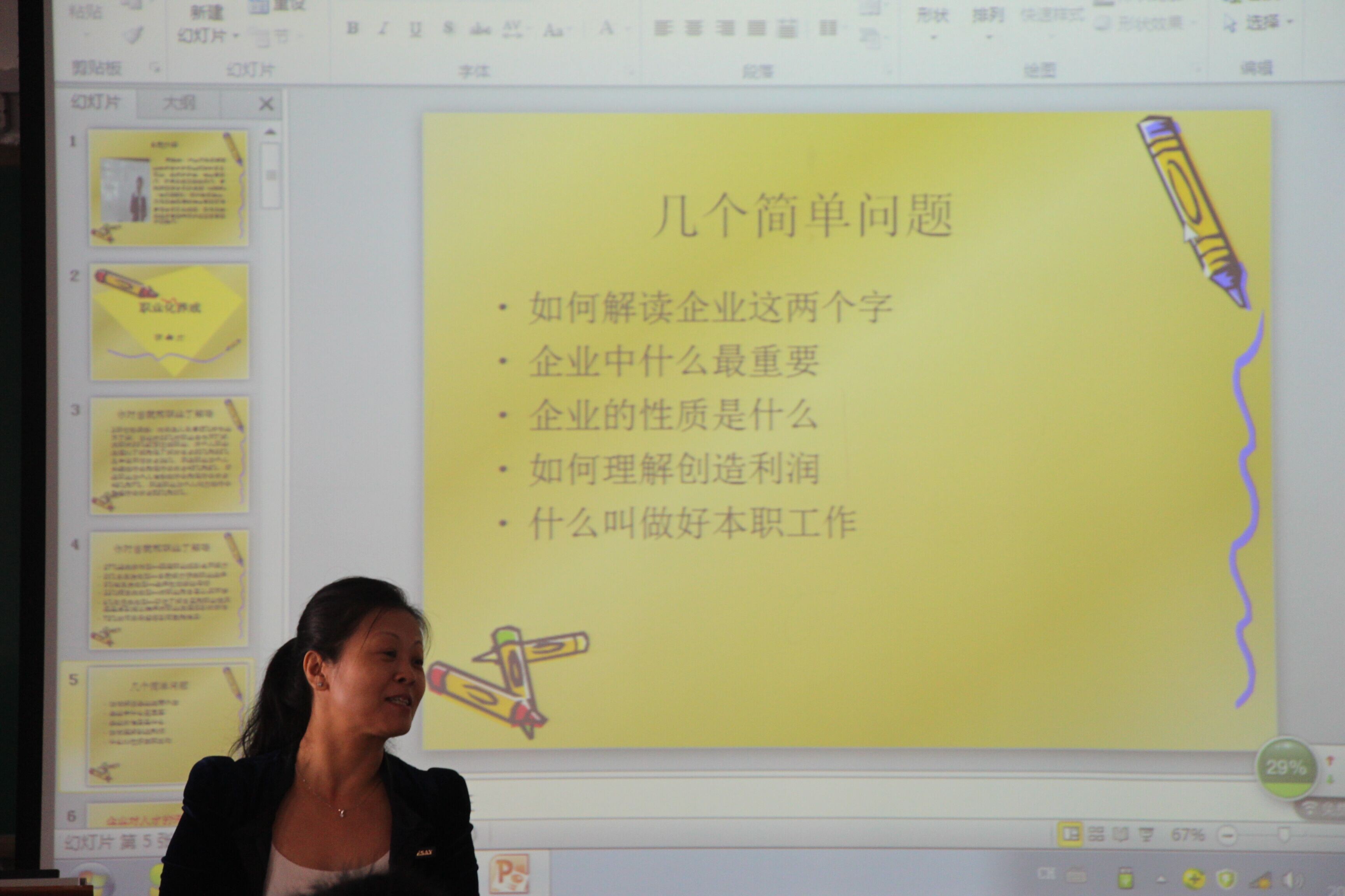 李金力老师从自己多年企业工作经验出发,向学生介绍了物业管理行业的发展以及企业的用人标准,给学生设定了大学的学习目标,使学生更加清楚自己的所学专业和未来发展方向。
