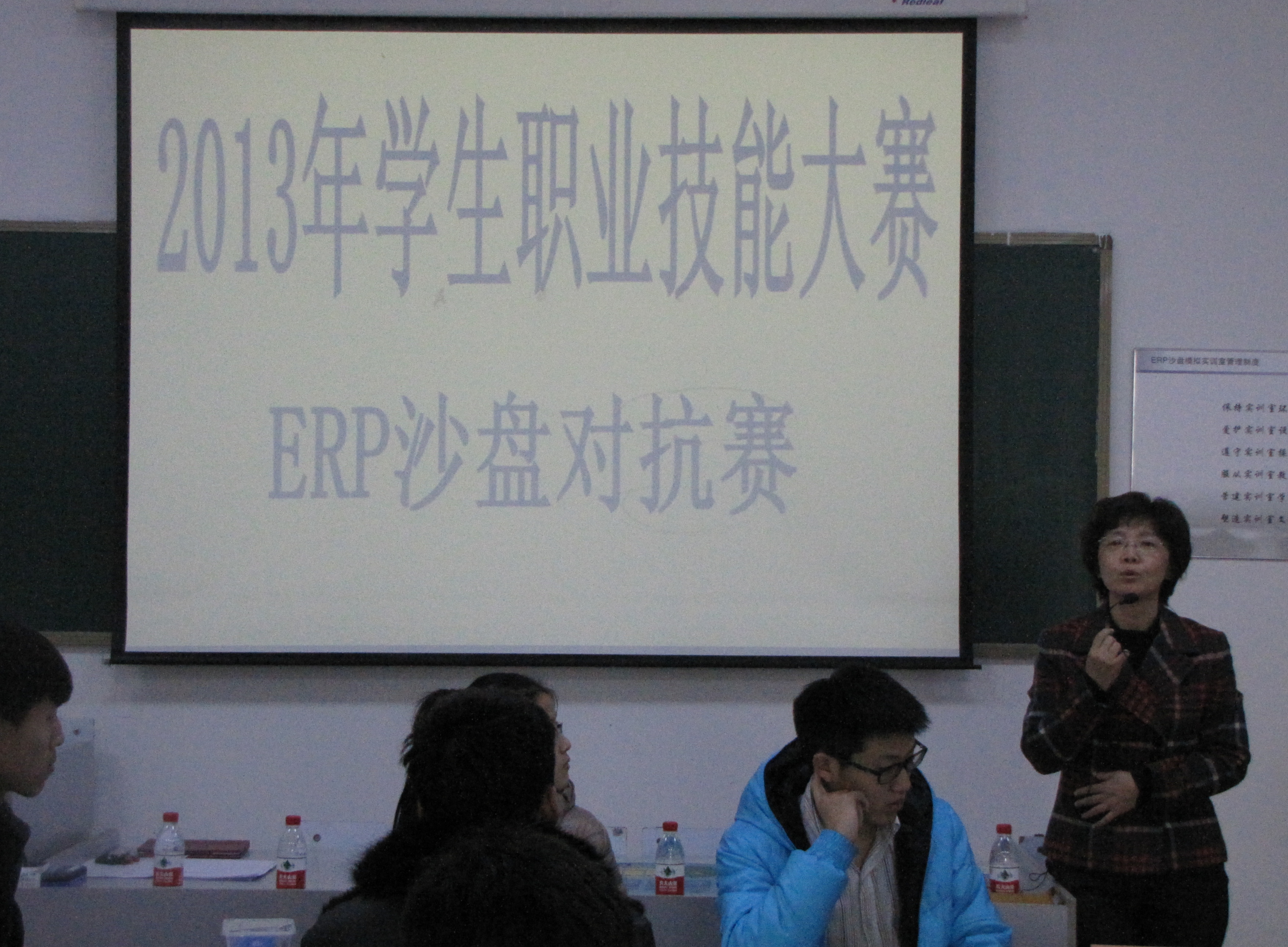 2013年12月9日下午13:00由工商管理学院ERP教学团队和工商企业管理教学团队共同组织的2013年大学生职业技能大赛ERP沙盘对抗赛决赛在ERP实训室顺利举行。学院大赛组委会办公室副主任李立老师、邢颖老师和吴丽梅老师、工商管理学院教学院长刘璇老师也亲临比赛现场进行指导。经过初赛的激烈角逐,来自4个分院中工商企业管理专业、创业管理专业、汽车营销专业、电子商务专业、网络营销专业、机械制造与自动化专业、电气自动化技术专业7个专业、13个班级,共计52名同学组成的11个代表队参加了此次决赛。