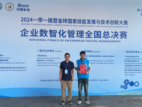 由金砖国家工商理事会中方理事会、一带一路暨金砖国家技能发展国际联盟、中国科协“一带一路”暨金砖国家技能发展与技术创新培训中心主办,中国发明协会、教育部中外人文交流中心联合主办的2024一带一路暨金砖国家技能发展与技术创新大赛企业数智化管理赛项全国总决赛于10月19日在广州科技贸易职业学院顺利举行。学校数字商贸学院学生张政、张昊然、刘景旭组成的代表队荣获国家二等奖,教师王学俊荣获“优秀指导教师”奖,我校荣获“优秀组织奖”。