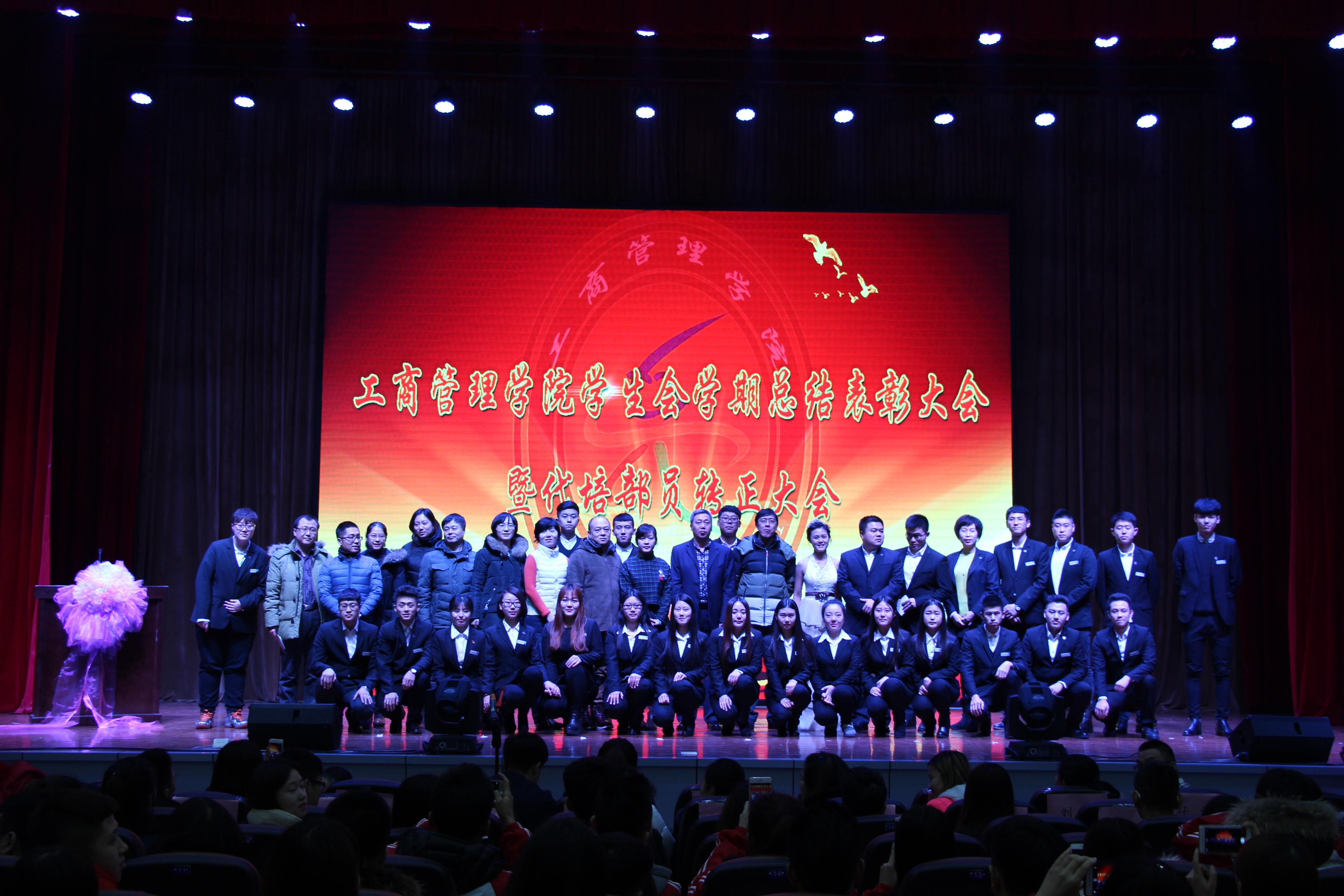 2015年12月23日,我校工商管理学院学生会召开学期总结表彰大会暨代培部员转正大会。工商管理学院党总支书记沈清涛、学管副院长孙亮、教学副院长刘莉、综合办主任施雯、学管办主任兼团总支书记毕大伟等出席大会。