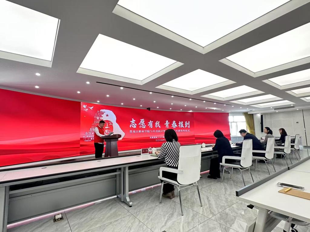 3月5日上午,数字商贸学院志愿者代表参加黑龙江职业学院与共青团道外区委校地共建签约仪式。