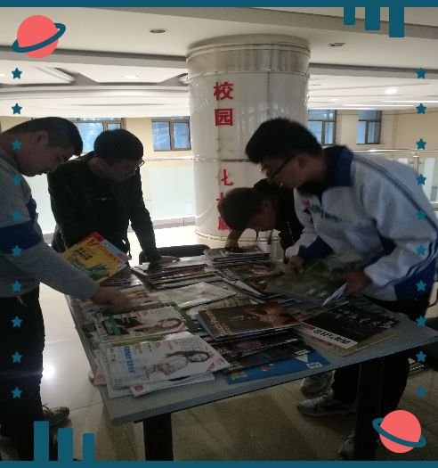 2017年9月26日,阳光书友社团在新学期进行的第一次社团活动,有书共读,社团将图书馆与阅览室的近期期刊在主楼二楼平台分发给社员,期刊涉及领域分别为人文类,科技类,历史类,文学类等。