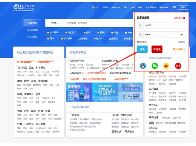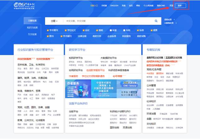1. 登录中国知网总库平台:www.cnki.net,点击登录,输入账号密码选择登录