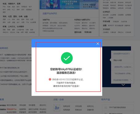 3. 成功登录漫游账号后,选择相关文章下载时会再次弹出手机号绑定界面,可选择跳过,如下图显示,中国知网支持(手机阅读、HTML阅读、CAJ、PDF下载阅读)
