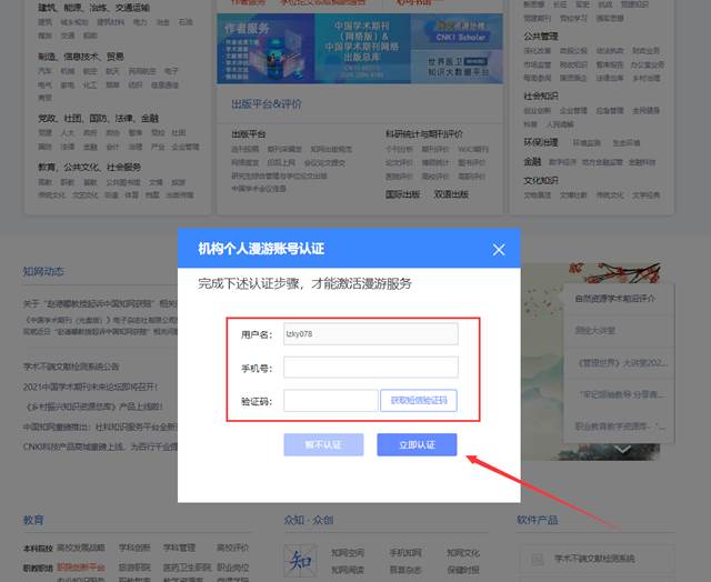 2. 首次登录该漫游账号须完成漫游账号认证,才能激活漫游功能,请输入手机号后获取验证码点击立即认证,激活漫游服务。(ps:如未出现激活漫游服务页面即已完成漫游激活功能,无需再次激活,每个手机号仅能激活一次漫游账号)