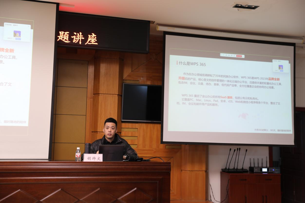 软件正版化工作是一项长期战略性工作,结合我校部署的WPS365教育版专属权益,特邀金山办公讲师胡烨文担任主讲嘉宾,通过实际操作演示与案例分析相结合的方式,围绕WPS 365的深度使用、数据隔离和加密技术、数据快速收集与整理、新一代在线内容协作创作工具等方面进行了详细讲解,并分享了有关智能文档、智能表单和多维表格在教育场景的优秀案例。